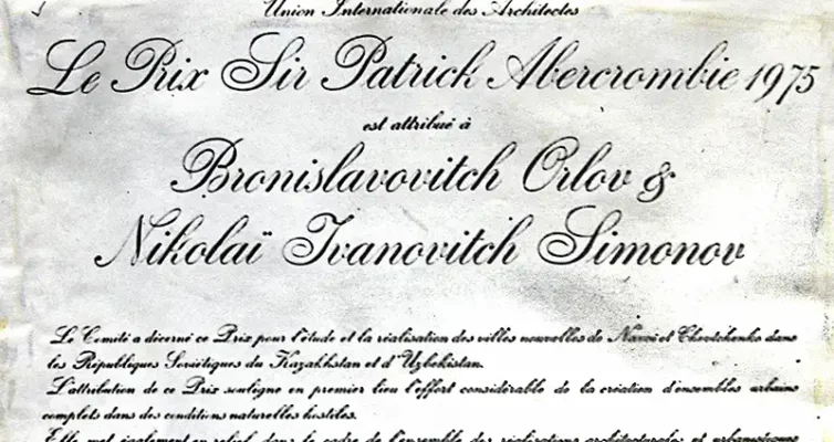 Диплом градостроительной премии имени Патрика Аберкромби Опубликовано 06.03.2026 автор admin — Добавить комментарий Диплом градостроительной премии имени Патрика Аберкромби, вручённый в 1975 году зодчим ВНИПИЭТ